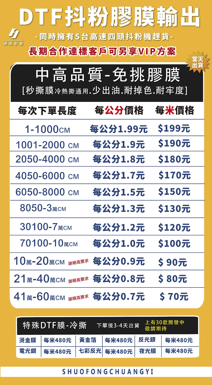 DTF-免挑膠膜出圖(每米價格)