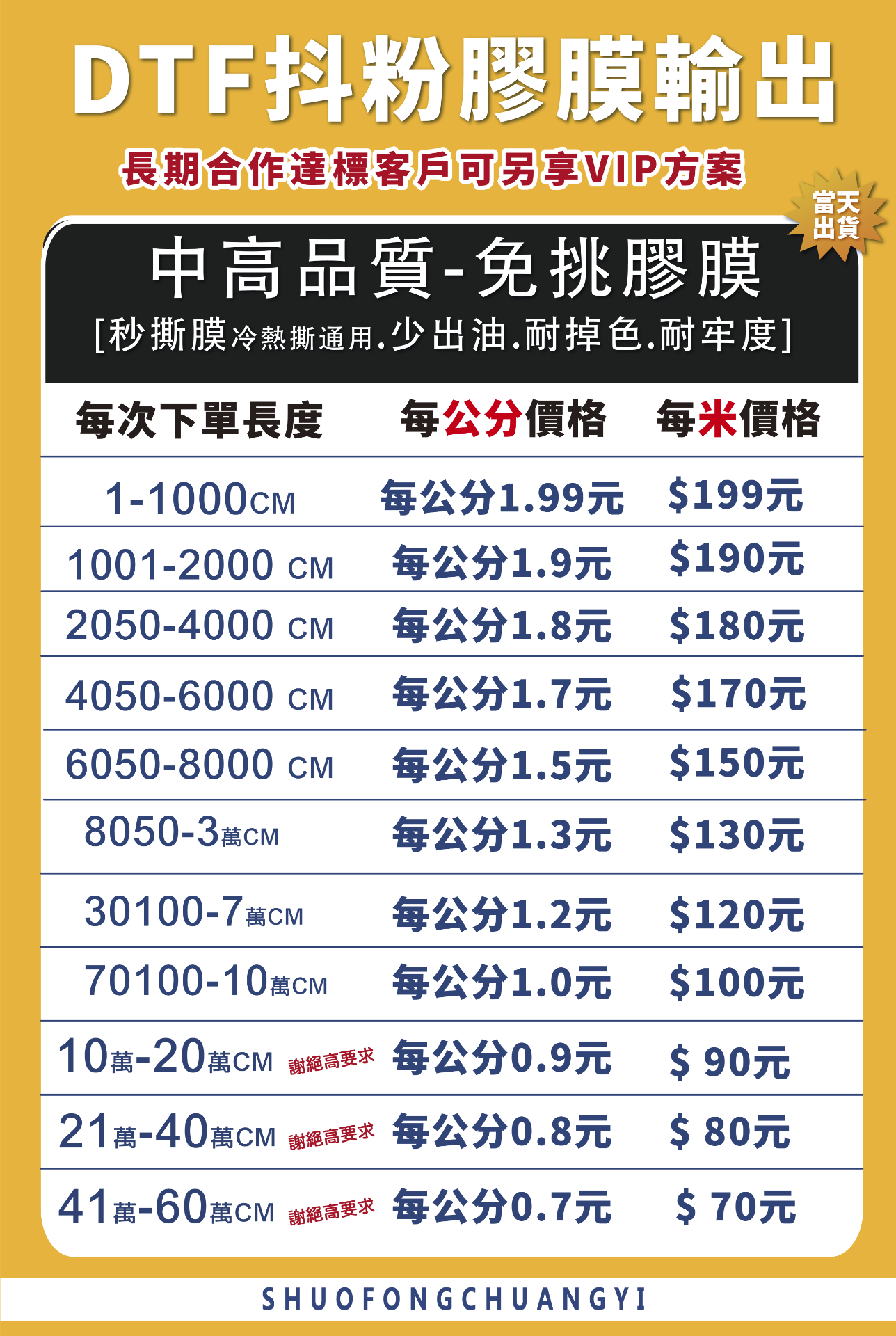 DTF-熱轉印膠膜出圖(每米價格)